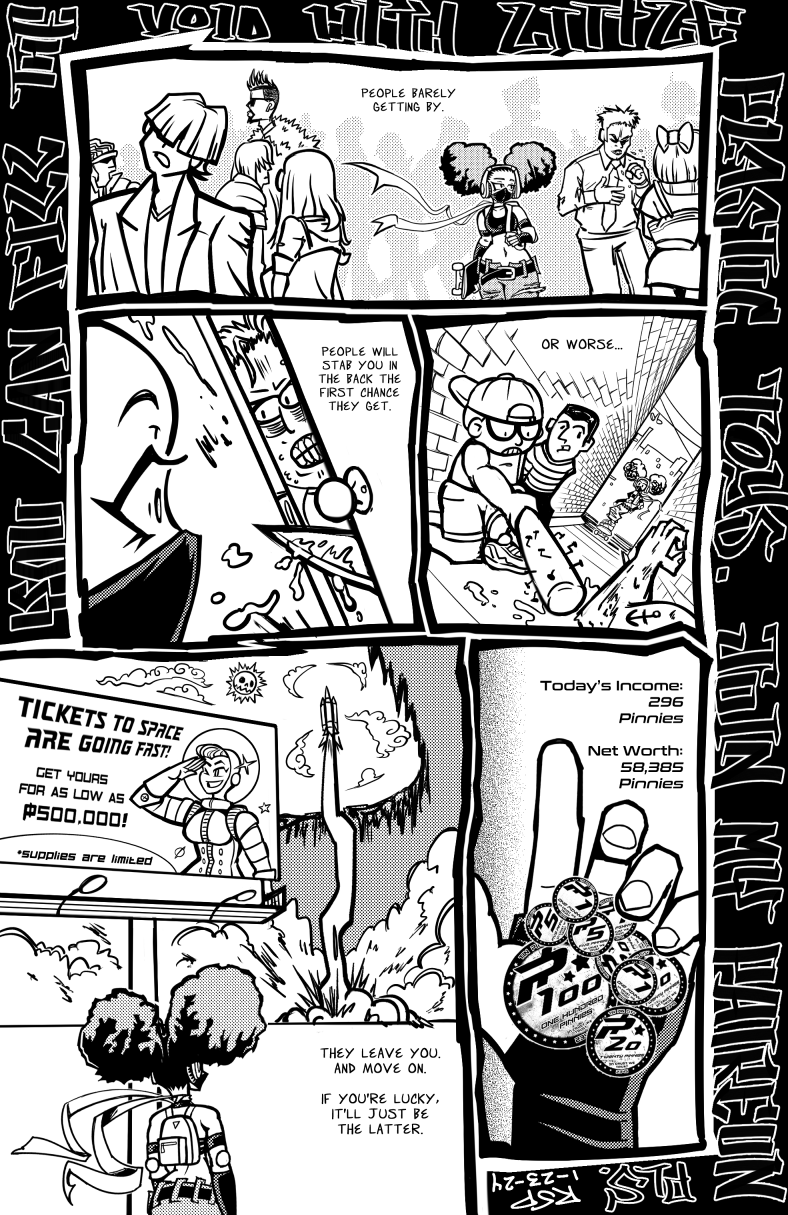 Members of my Patreon have decided that the sign in panel 4 will be more important than I initially planned. And panel 5 gives you the first look at the currency used in Tin Pin City, "pinnies".